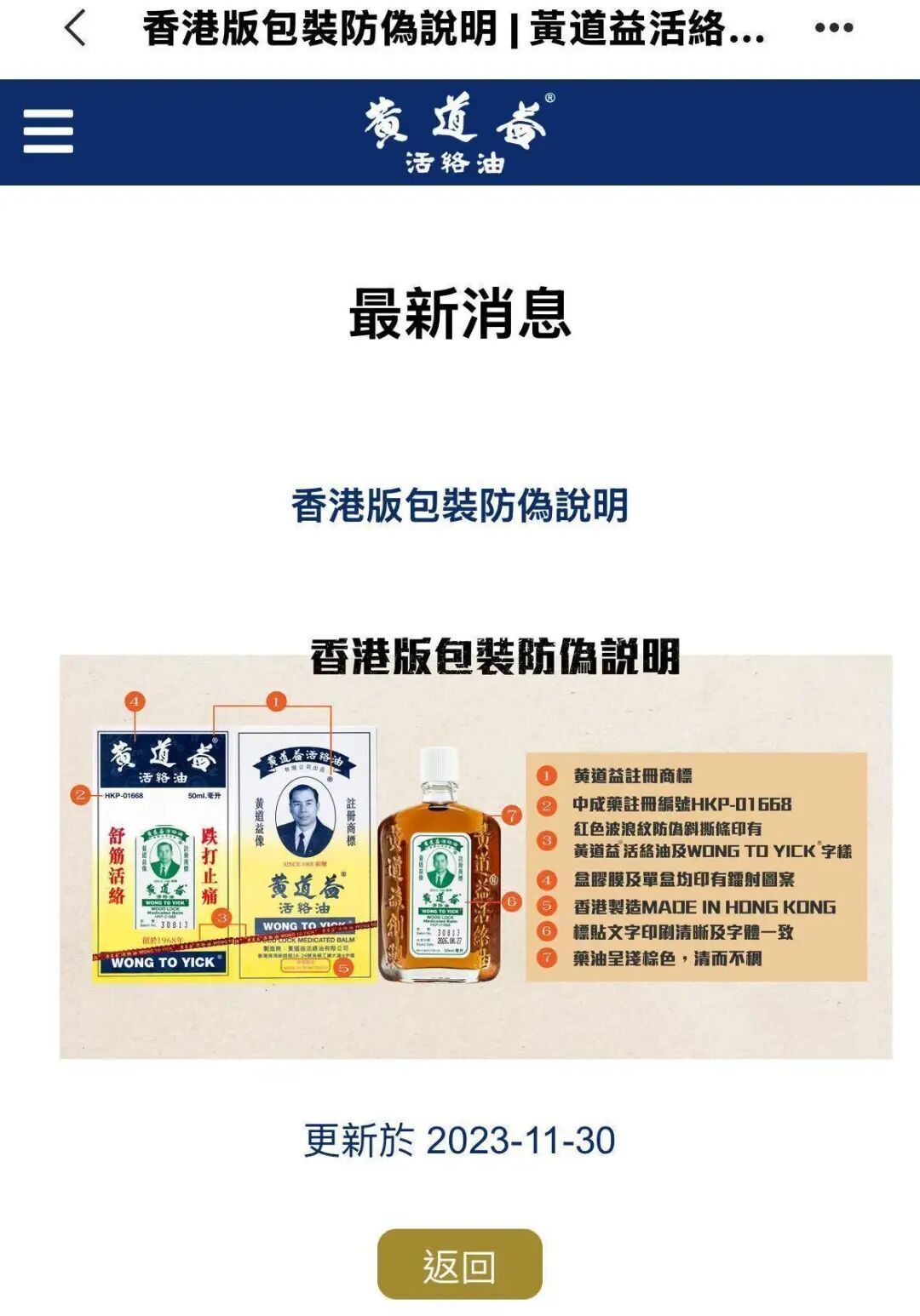 黄道益活络油有限公司回应: